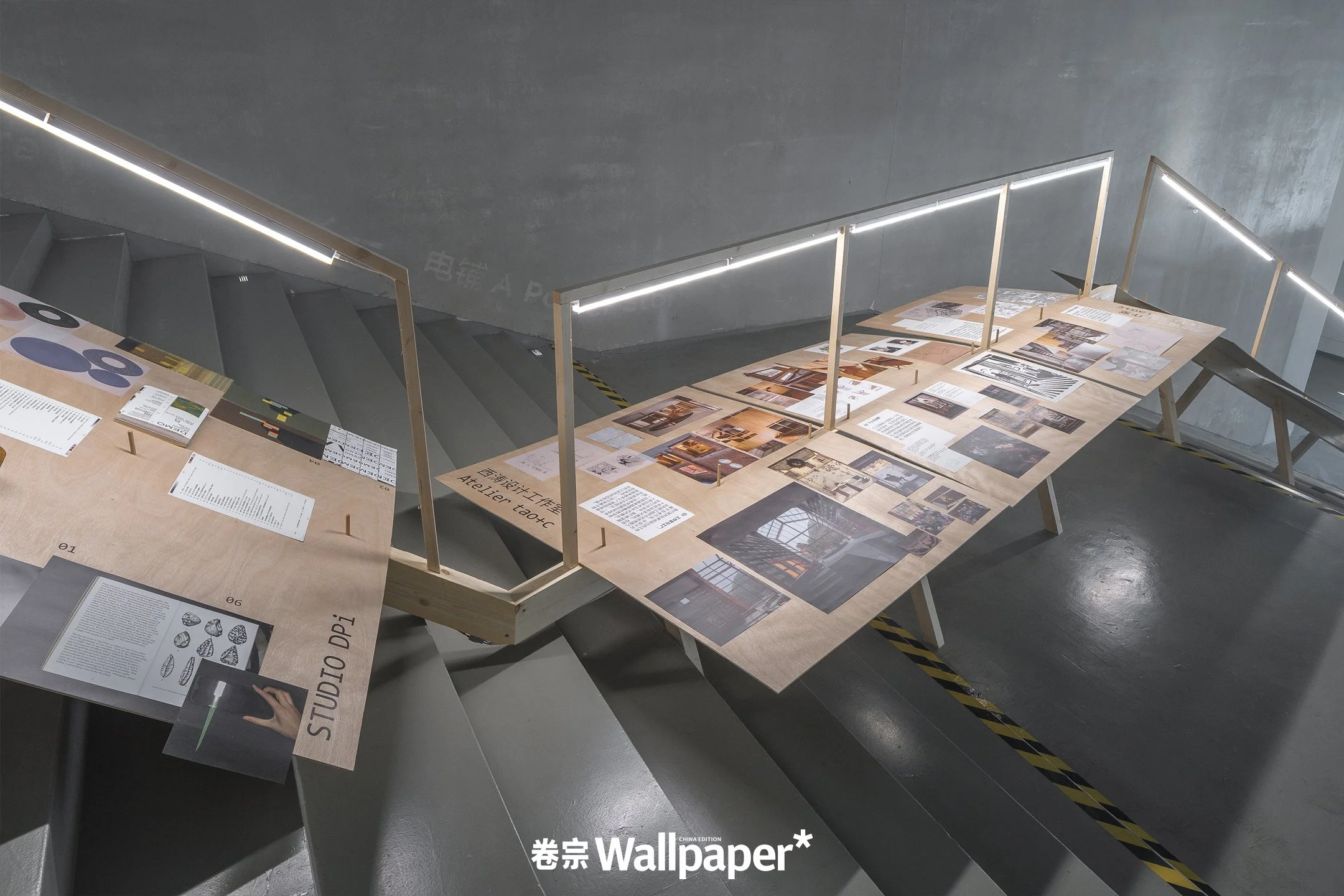 汪汝徽巧妙地将展览的现场,选择在上海当代艺术博物馆中一座4.5米高、40米长的阶梯空间之上, 构建出拾级而上的观展经验,也象征了:提问、前进、探索与再提问再前进的创作历程。 在展陈设计师西涛设计工作室(tao+c)的设计下,设计师们的回应被安置在一张张彼此相连的 木质桌板之上,犹如登山而上的道路。这条融汇了来自各领域的设计师的思想与观念的“道路”, 正隐喻着后疫情时代“共同体”的思考;正是众人的接力与汇聚,走出与引领出人类未来的道路。